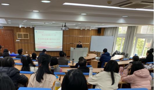 讲座伊始,程新生教授以自身从博士阶段开始的实践调研经历引出学术研究选题的方法。他指出,学术研究选题来源一是结合实践做案例研究,在调研实践中进行理论总结;二是读文献,特别要读一流期刊、一流学者、一流研究团队的文献;三是逐步积累自有数据库。程新生教授勉励师生积极参与同行交流、同时选择性参与跨学科学术交流,通过学界交流保持选题的创新性。