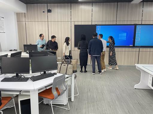 在调研会结束后,黄浩副院长、王建业主任带领郑州航空工业管理学院商学院调研组一行参观了学院的智能会计综合实验室。介绍了实验室相关课程所采用的软件和平台公司,调研组对实验室的分区,硬软件系统表示高度赞许,认为我院的实验教学建设与时俱进,能够满足社会实际,实现学生对不同实验活动的需求。