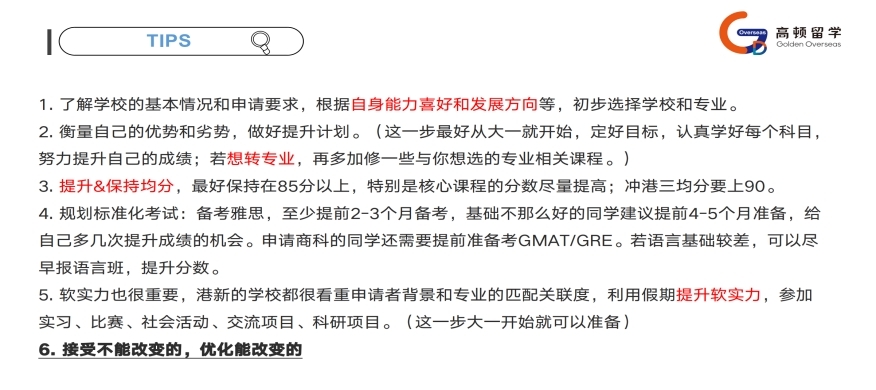 接着,Sunnie老师结合目前的留学要求以及过往留学经验,为同学们的留学准备提出了建议。同时,老师再一次强调了实习、实践以及相关软实力的培养一定要有所针对,要紧扣着目标院校的目标专业进行培养和锻炼,并且要做出能够体现在简历上的实事。