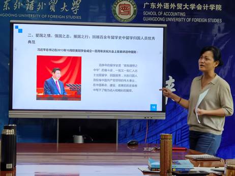 龙文滨以“生于伟大国度是人生之幸”为题进行领学,首先学习了习近平总书记给南京大学留学归国青年学者回信,强调留学归国青年要心系“国家事”、肩扛“国家责”;其次,回顾了百余年留学史中留学归国人员优秀典范,她认为爱国之情、强国之志、报国之行始终是贯穿留学归国人员奋斗征程的主旋律;最后,分享自身的留学、访学经历与感悟,表示生于伟大国度是人生之幸,一是要心怀爱国之情,以行动笃行报国之志;二是要确立文化自信,以论文讲好中国故事;三是要坚持立德树人,以教学传输爱国思想。她提出留学归国人员要主动把“国家事”放在心上,主动把“国家责”放在肩膀上,做到“心有大我,至诚报国”,以“功成不必在我”的情怀投身到祖国的教育事业中。